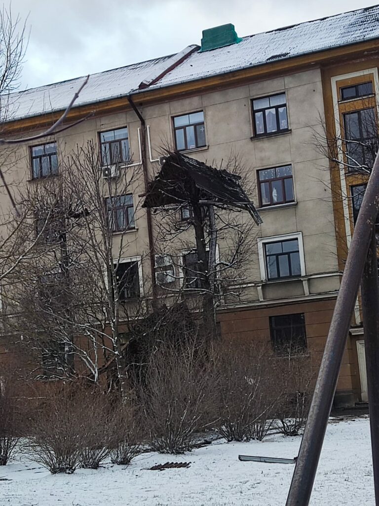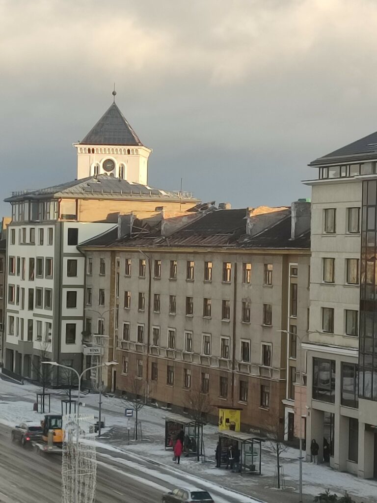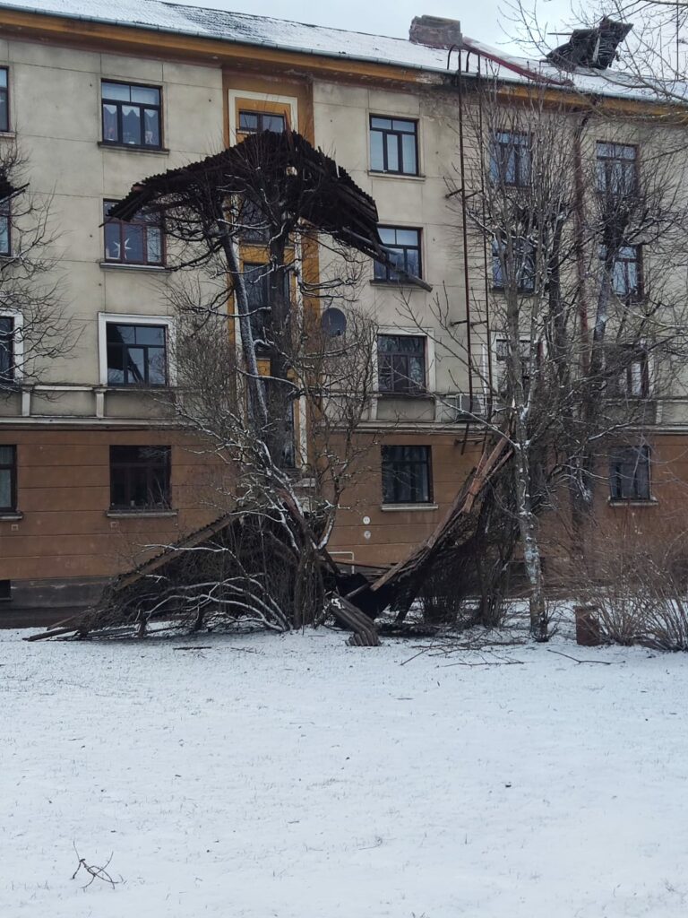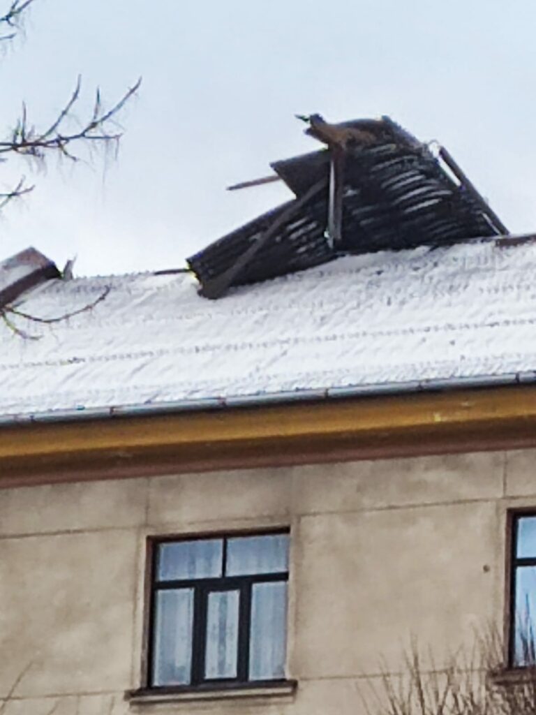 Turpinoties brāzmainajam vējam, pirmdien pusdienlaikā mājai Lielajā ielā 5 daļēji tika noplēsts jumts. Vēja nestās jumta konstrukcijas nosēdās mājas kokos un arī nokrita iekšpagalmā. Negadījumā neviens nav cietis.