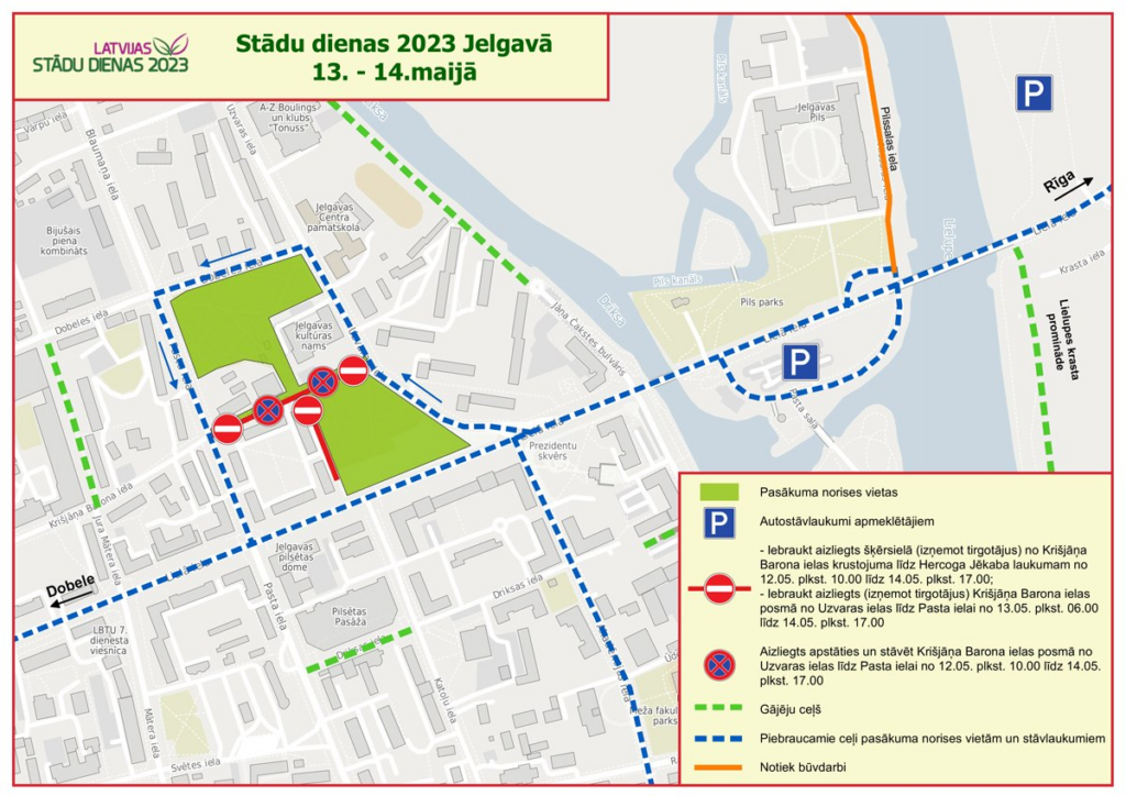 Jāpiebilst, ka pasākuma apmeklētājiem būs pieejams stāvlaukums Pilssalas ielā 1, kā arī pļavā pretī Jelgavas pilij.