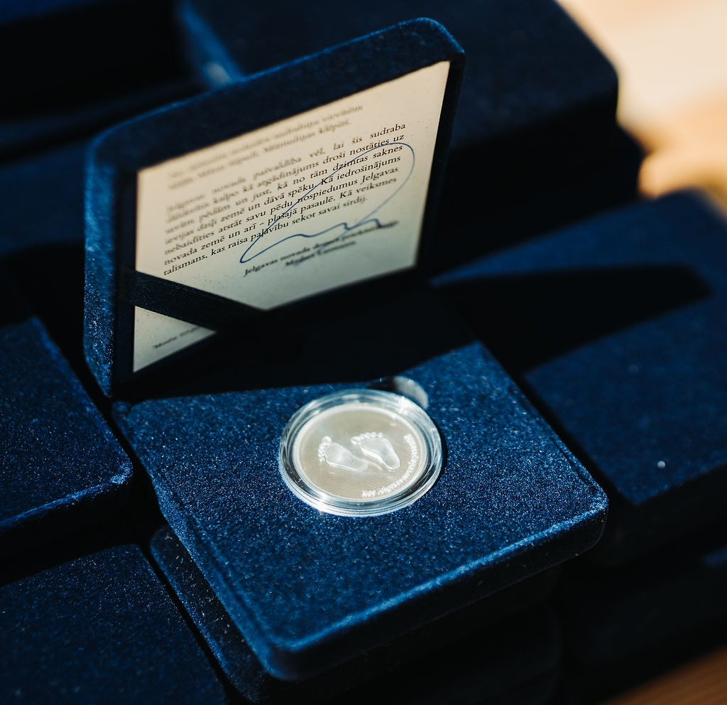 Jaundzimušo novadnieku ģimenes sveica domes priekšsēdētājs Madars Lasmanis, kā arī pagasta pārvalžu vadītāji, pasniedzot simbolisku dāvanu – sudraba monētu, kuras reversā ir attēlots bērna pēdiņu nospiedums ar tekstu „Nes Jelgavas novadu pasaulē!”, savukārt monētas aversā redzams Jelgavas novada ģerbonis. Par sirsnīgu muzikālo apsveikumu rūpējās Čučumuižas rūķi, ļaujot pieaugušajiem uz mirkli atkal kavēties pasaku valstībā.