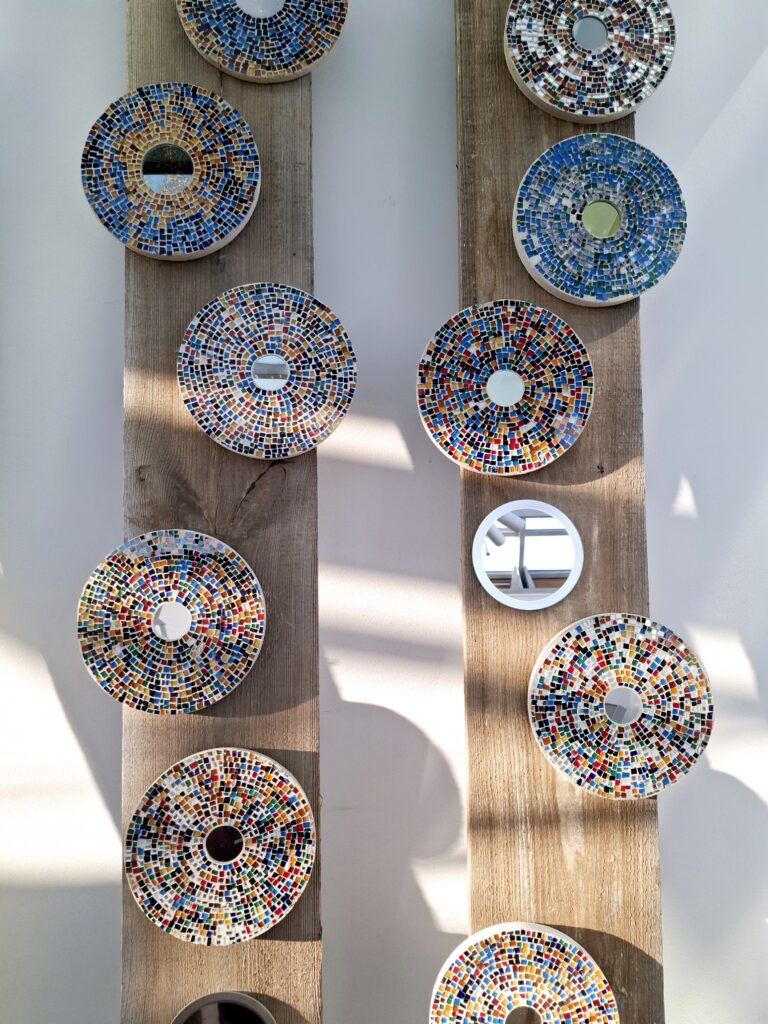 Par izstādi “Kaleidoskops zem lupas” Jelgavas Sv. Trīsvienības tornī Asnate un Marika ir vienisprātis – tajā satiekas divas ļoti dažādas mākslinieces, piedāvājot apmeklētājiem skatīt radikāli atšķirīgus, taču vienam otru papildinošus stikla mākslas darbus. Marikas darbi ir kā ritmiska, konstruktīva spēlēšanās ar mazkrāsainu liektu un taisnu stiklu un ģeometriskām figūrām – plakne pret telpiskumu, caurspīdīgums pret necaurspīdīgumu, vieglums pretstatā svaram. Savukārt Asnates darbos kā zem lupas spoguļojas gan pavisam necilas, gan diženas pasaules parādības – vissīkākie ziediņi un kukainīši, eksotika un fantāzija kā krāsaini stikliņi kaleidoskopā atsauc atmiņā bērnības sajūtas, kad brīnumu pilnām acīm vērojām rotaļlietas mainīgos rakstus.