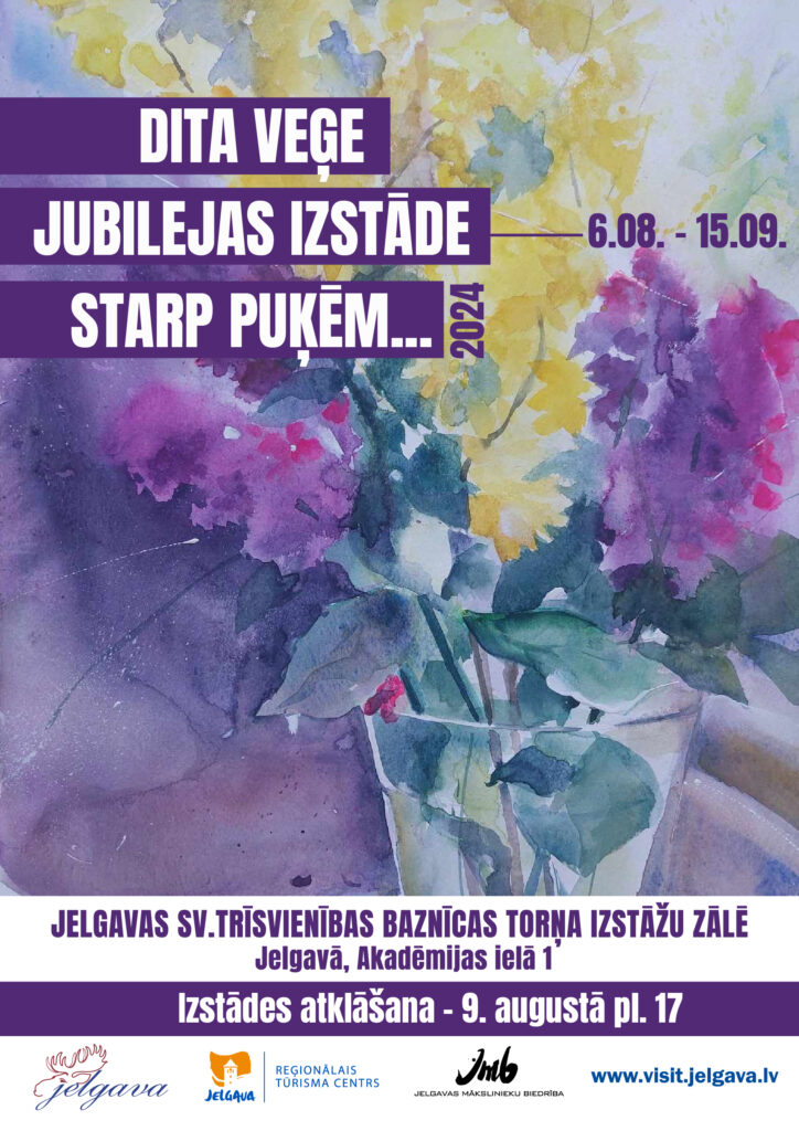 No 6.augusta Jelgavas Sv. Trīsvienības baznīcas torņa izstāžu zālē skatāma jelgavnieces Ditas Veģes jubilejas izstāde “Starp puķēm…”. 9. augustā pulksten 17 interesenti aicināti uz izstādes atklāšanu un tikšanos ar mākslinieci, informē Jelgavas reģionālais tūrisma centrs.