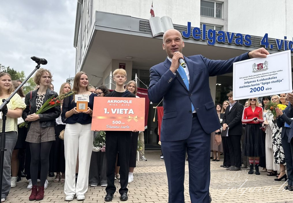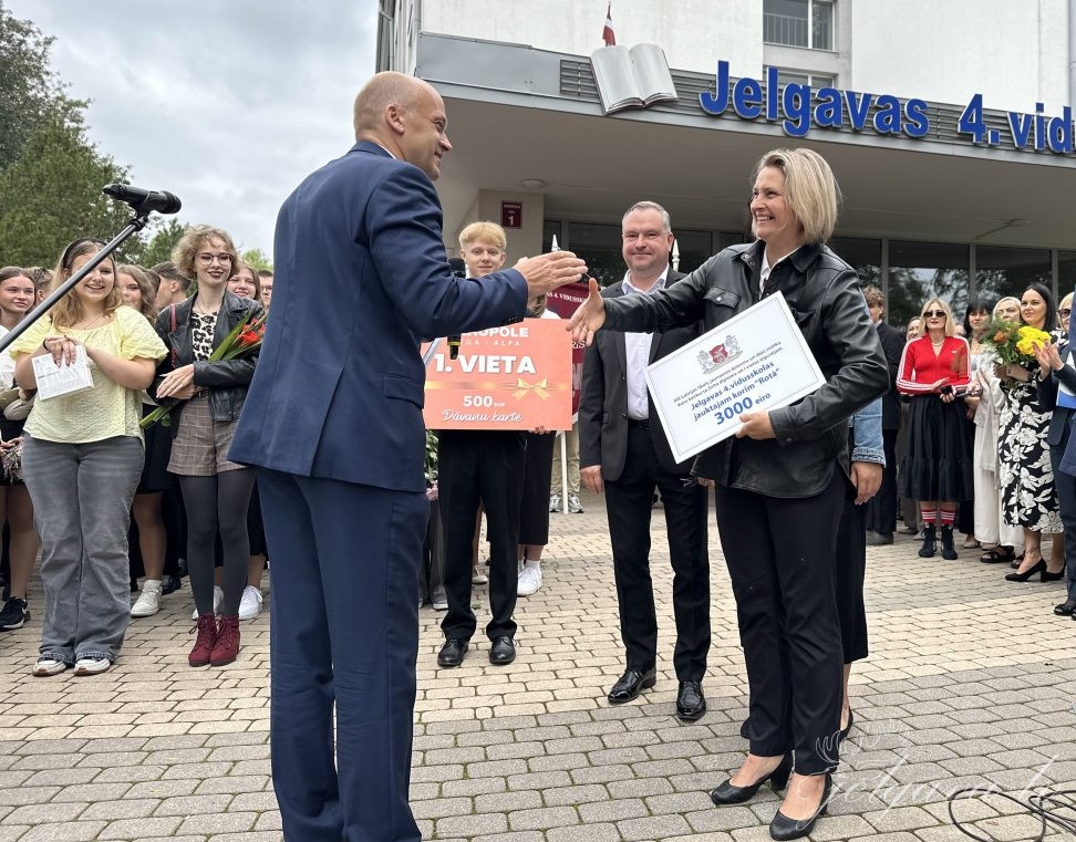 Jelgavas 4. vidusskolas jauktajam korim “Rotā” par izcīnīto I vietu un Zelta diplomu jaukto koru grupā pašvaldība piešķīrusi 3000 eiro, bet 4. vidusskolas meiteņu korim “Spīgo studija” par izcīnīto Zelta diplomu savā grupā – 2000 eiro. Jelgavas domes priekšsēdētāja vietnieks Aigars Rublis svinīgajā Zinību dienas pasākumā koru pārstāvjiem pasniedza naudas balvu.