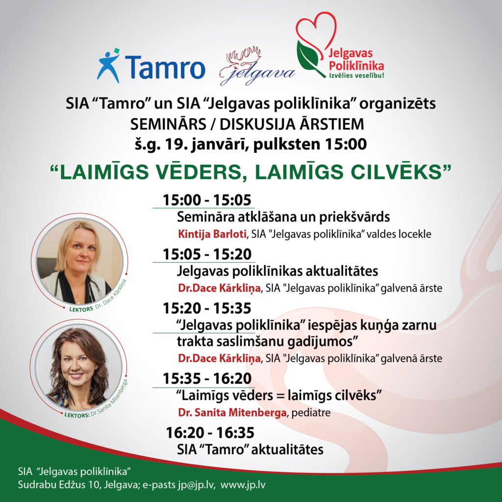 19.janvārī pulksten 15.00 norisināsies seminārs ārstiem “Laimīgs vēders, laimīgs cilvēks”.