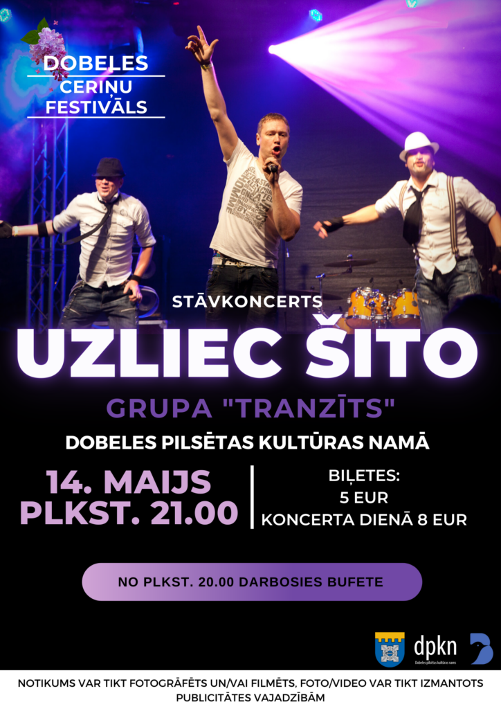 “Dobeles Ceriņu festivāla 2022” laikā, 14. maijā pulksten 21 Dobeles kultūras namā notiks koncerts “Uzliec šito”, ko sniegs grupa “Tranzīts”.