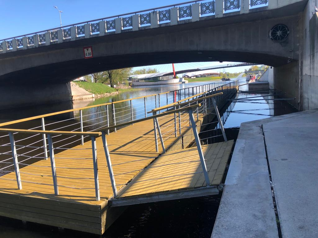 “Pilsētsaimniecība” informē, ka pirms pontonu uzstādīšanas tika veikti remontdarbi – nomainītas margas, klāja un cokola dēļi, turklāt šīs nedēļas laikā tiks pabeigti remontdarbi arī pontonam zem restorāna “Pilsētas elpa”, kas paredzēts kuģošanas vajadzībām.