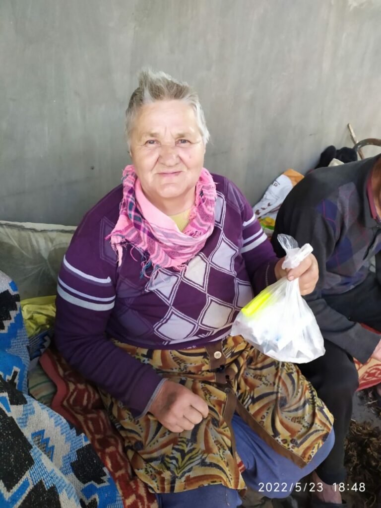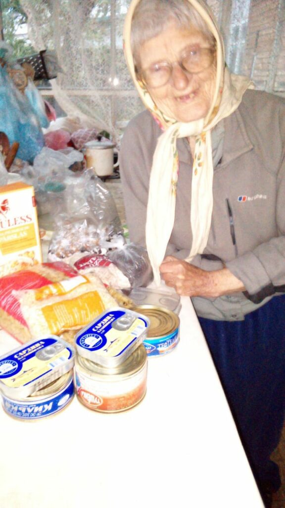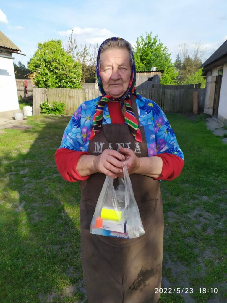 STARP palīdzības saņēmējiem ir 93 gadus vecā skolotāja Gaļina Semeņivna, kas Bilas Kriņicas ciemā dzīvo viena. Mājas soli palīdz veikt kaimiņi. Arī viņai pienācās palīdzības sūtījums no Latvijas. “Ukrainā valsts veciem cilvēkiem sniegtais atbalsts nav pietiekams,” paskaidro Jana Tomaševska.