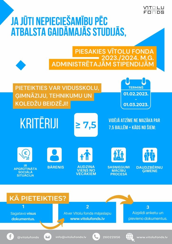 Vairāk informācijas: https://www.vitolufonds.lv/pieteiksanas-stipendijai