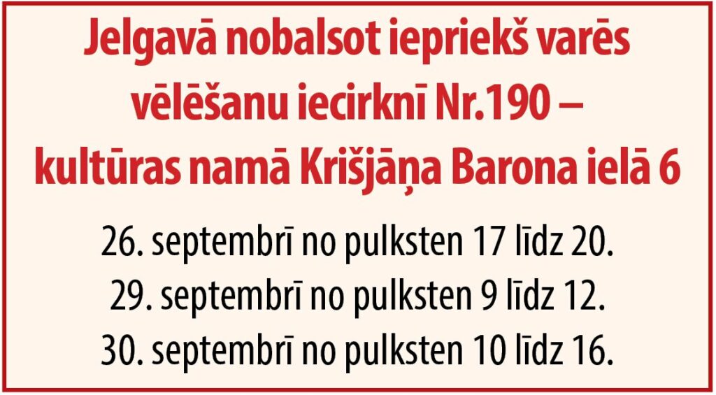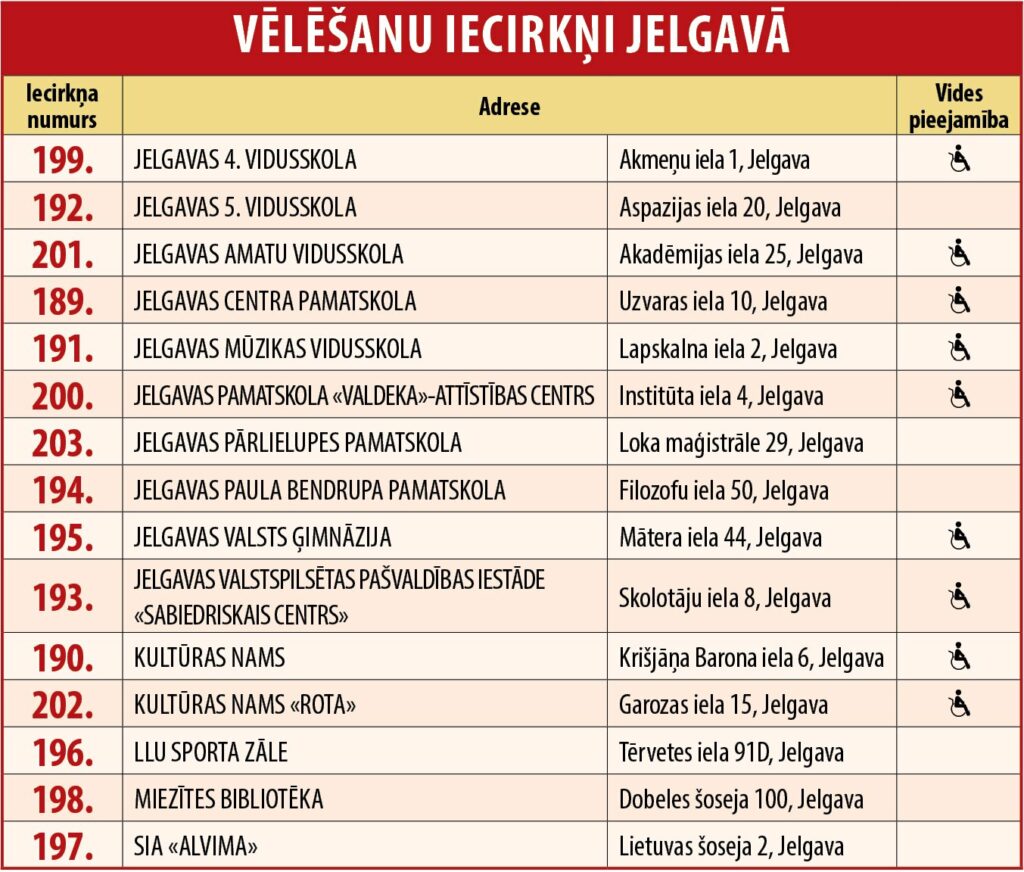 Kopumā šāda iespēja būs 66 vēlēšanu iecirkņos Latvijā, tostarp vienā vēlēšanu iecirknī Jelgavā – Jelgavas kultūras namā.
