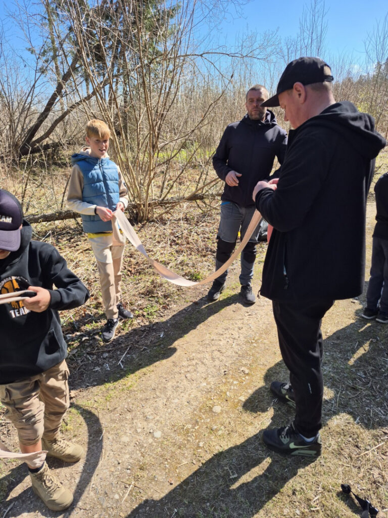 Dalībnieki apguva arī pirmās palīdzības sniegšanu dabā, īpaši asiņošanas apturēšanu, kā arī dzīvnieku pēdu atpazīšanu.