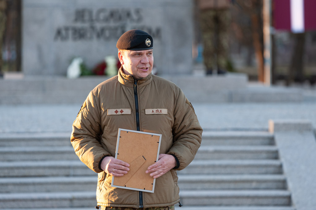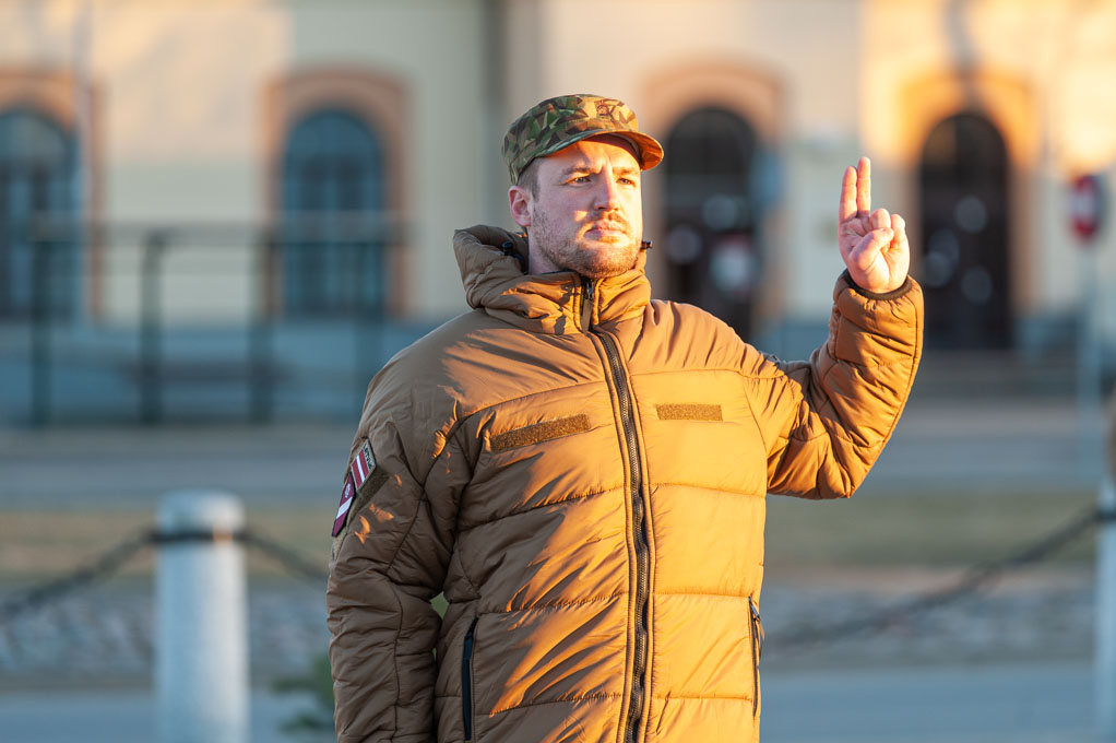 Jaunos zemessargus svarīgajā brīdī sveica arī Jelgavas valstspilsētas domes priekšsēdētājs Andris Rāviņš. “Jūs šodien kļūstiet par mūsu Tēvzemes sargiem un uzņematies pienākumus, kurus noteikti atbildīgi pildīsiet. Lai jums ir spēks, izturība un atbalsts, sargājot mūsu Tēvzemi,” tā A.Rāviņš.