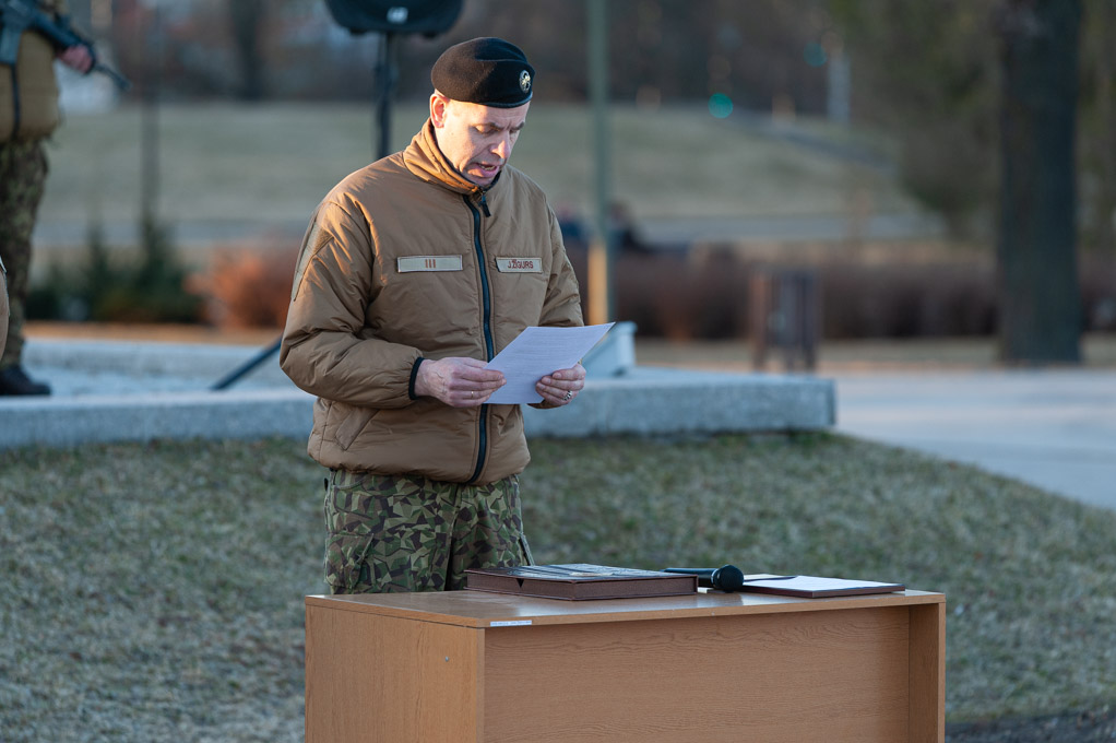 “Šodien ir svarīga diena jums, mūsu bataljonam un arī Nacionālajiem Bruņotajiem spēkiem, jo zvērestu nodot desmit jaunie zemessargi. No šī brīža jūs kļūstiet par Latvijas karavīriem. Augsti novērtēju jūsu katra izvēli. Nav šaubu, ka tā ir rūpīgi pārdomāta. Šobrīd uz jums paļaujas ne tikai jūsu ģimenes, bet visa latviešu tauta. Esiet savā pārliecībā droši. Būsim stipra valsts,” jaunos zemessargus uzrunāja Zemessardzes 52. kaujas atbalsta bataljona komandieris pulkvežleitants Arvis Zīle.