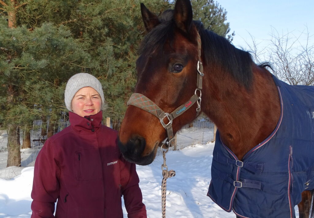Saulainā, bet dzestrā ziemas dienā Jolanta mūs pie saimniecības vārtiem sagaida ar savu divpadsmitgadīgo sporta partneri zirgu Apache JJ, kam atbilstoši ziemīgajiem laika apstākļiem uzlikta silta sega. Kā izrādās, arī zirgiem, līdzīgi kā suņiem, spalvas biezums mēdz atšķirties, un dažiem aukstajā laikā nepieciešams papildu “apģērbs”. Citādi zirgi ir labi pielāgojušies laikapstākļiem un visu gadu uzturas āra aplokos, kur no stiprāka lietus un sniega patveras zem nojumes. Kā stāsta zirgu saimniece, stallis ar boksiem jeb steliņģiem galvenokārt kalpo cilvēku ērtībai – tajā jātnieki var ievest zirgu atpūtai pirms un pēc nodarbībām. Stallī ierīkota arī atsevišķa silta seglu telpa, kur katram zirgam glabājas savi segli un iemaukti.